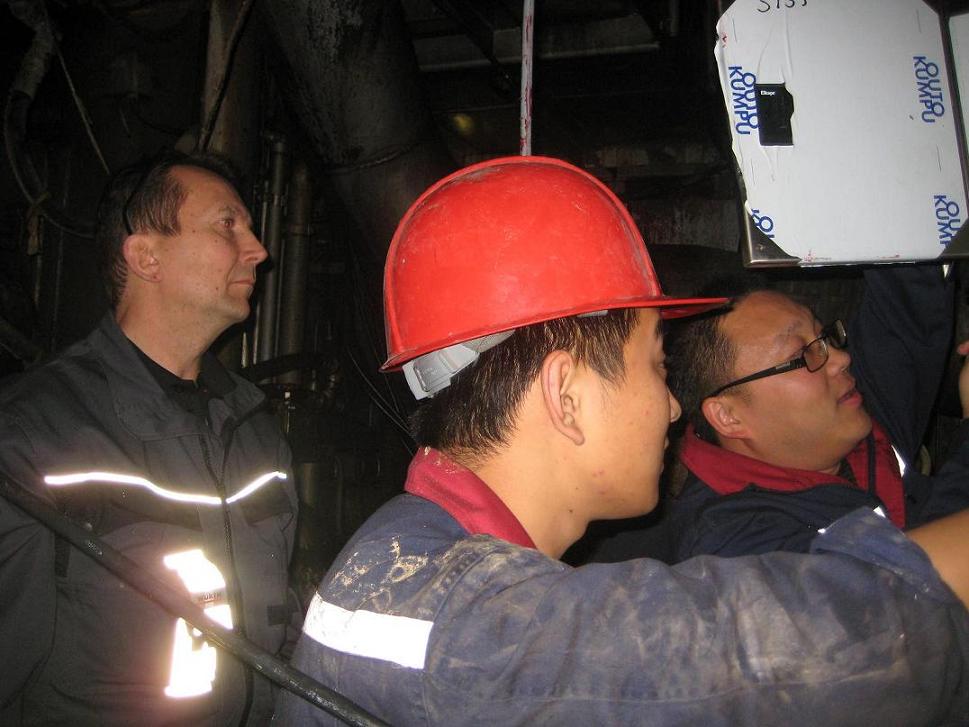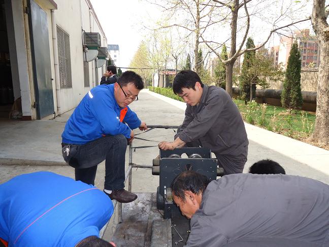 2012年4月23日,我司工程師在山東南山集團(tuán)精紡車間行車維修現(xiàn)場。